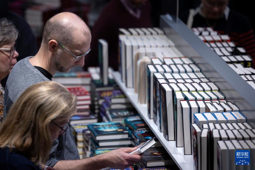 10月25日,一名男子在芬兰首都赫尔辛基会展中心举行的第25届赫尔辛基书展上选购书籍。