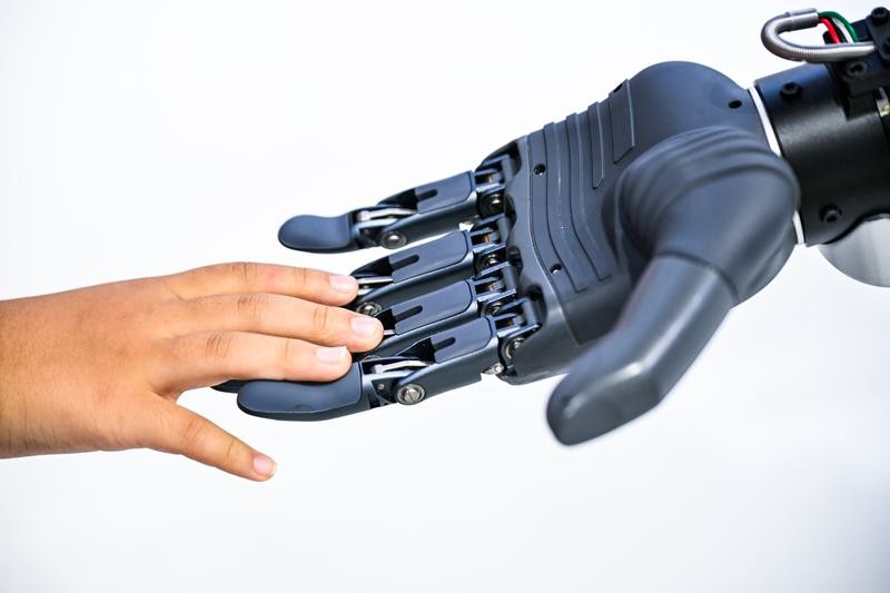 资料图为小朋友与人形机器人互动。图片来源:新华社