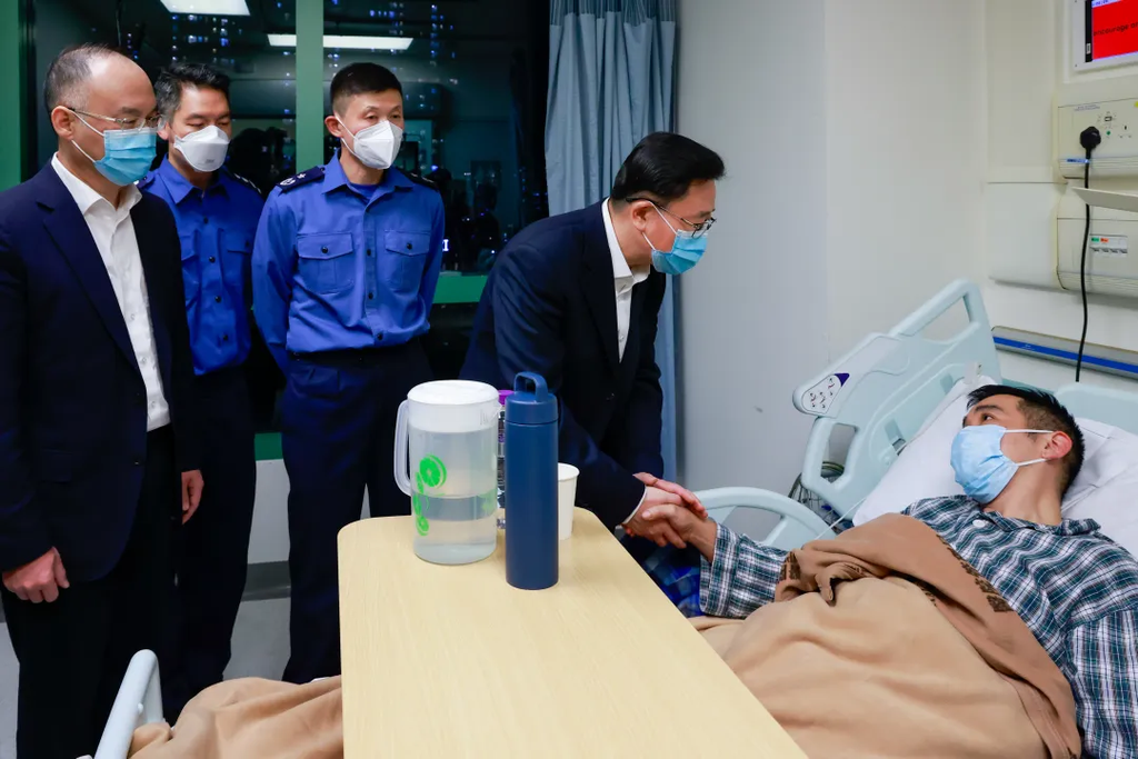 11月27日下午,中央港澳办副主任、国务院港澳办副主任、中央政府驻香港联络办主任周霁,中央港澳办副主任、国务院港澳办副主任农融前往元朗博爱医院,探望慰问参与火灾救援受伤的消防员曾智燊、张颂豪和张伯枞及其家属。