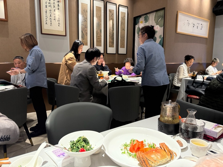 这份信心来自顾客,也来自品牌累积的情感。他笑说,不少老客人从欧洲、澳洲回流,第一餐就回杭州酒家,“那种感动,很难用生意的语言来描述。”