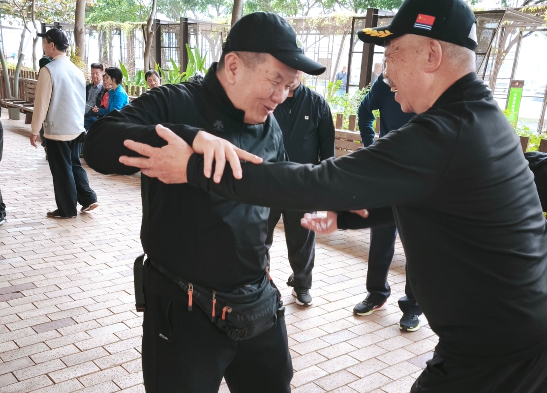 香港太极推手会与顺德拳友交流分享推手乐趣。