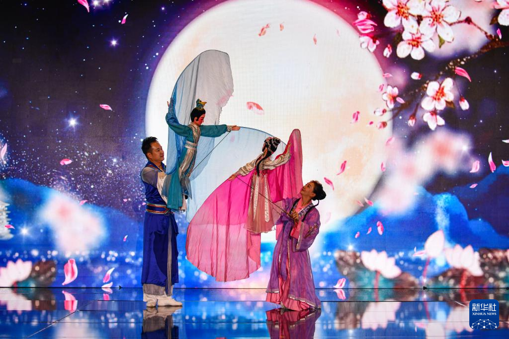 1月29日,演员在埃及开罗表演木偶戏《蝶恋花》。