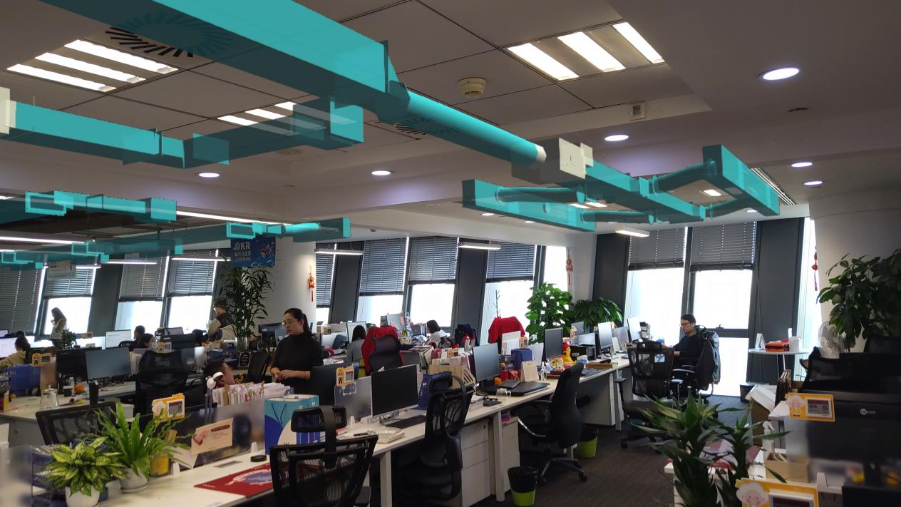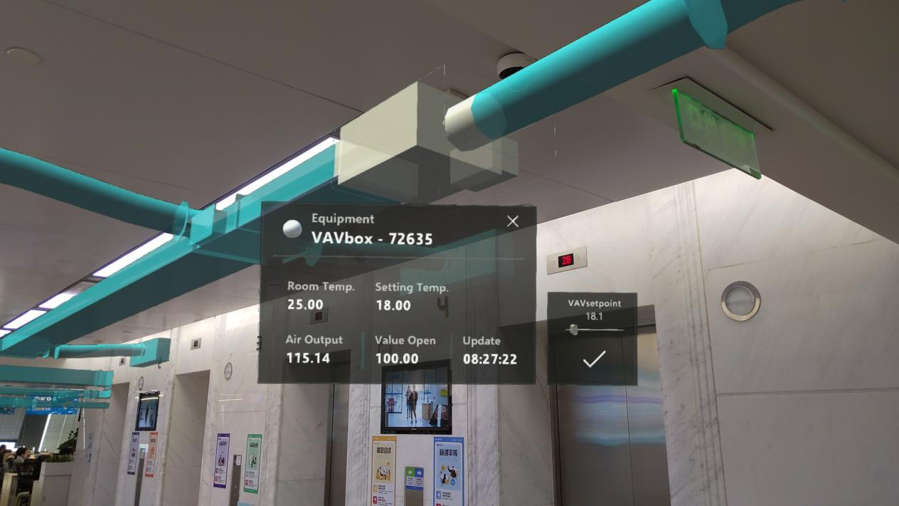 更具突破性的是混合实境(MR)应用:维修人员戴上Microsoft HoloLens 2眼镜,即可“透视”墙内及天花板隐藏的冷气管道与设备。系统不仅即时显示运行参数与AI诊断结果,还提供室内导航,直接带领人员抵达故障点。即使是无AI背景的普通技工,也能快速上手,大幅缩短排查与维修时间。