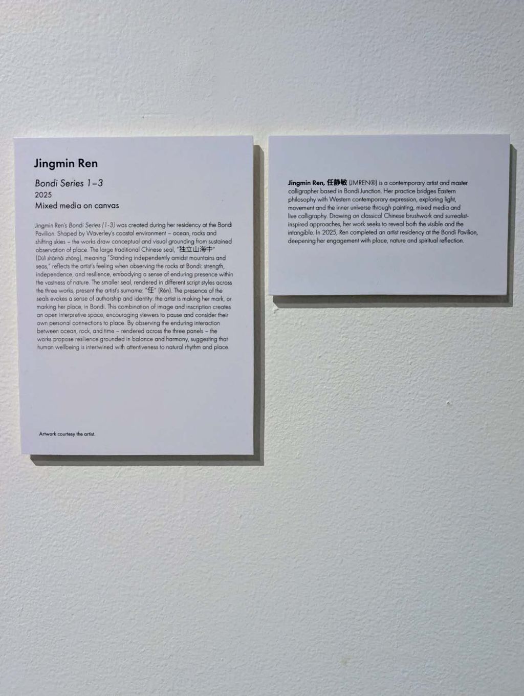 香港新闻社3月1日悉尼电 作为本次展览唯一的华裔艺术家,澳大利亚国际获奖艺术家任静敏(Jingmin Ren)携其代表性系列《心印流年 XINYIN LIUNIAN™ – Bondi Series》 亮相悉尼 Bondi Pavilion 举办的当代艺术展 “Good Together”。她开创了以东方金石印章艺术为核心,结合邦迪海岸线自然景观的全新艺术语言,通过跨媒介创作回应社区、自然与可持续未来的时代命题。