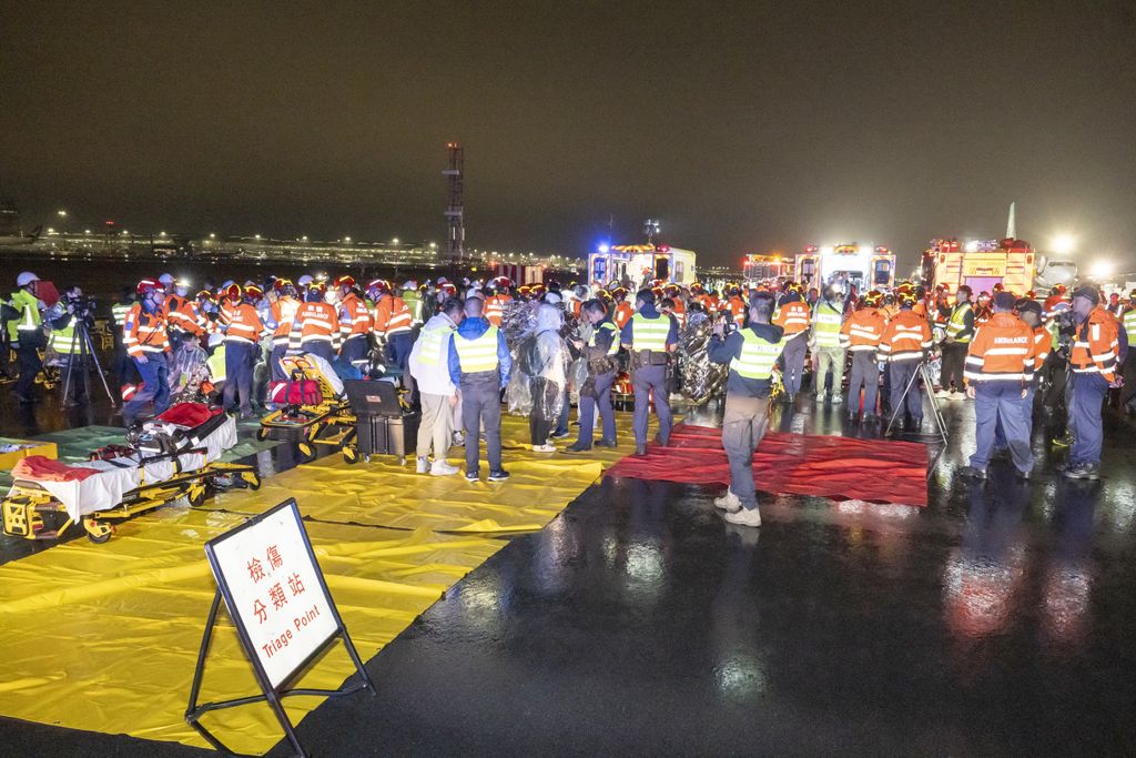 今日(3日)凌晨,香港国际机场在中跑道举行年度飞机事故及救援演习,以测试机场同业处理飞机事故的应变能力,演习约有20个机构及政府部门合共逾千名代表参与,大湾区航空为参与的航空公司,另有超过400位志愿人士扮演旅客及受影响旅客亲属。