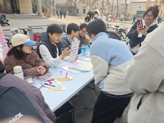 如果说夸夸摊位是温暖治愈,那“色义迷踪阵·专注考验”摊位就是一场“专注力大挑战”。参与者需在杂乱的色彩与文字中,快速找出指定内容,看似简单的游戏,却能让人瞬间静下心来,在专注中舒缓身心。不少同学闯关成功后,都忍不住欢呼:“太有成就感了,刚才完全忘记了学习的压力!”
