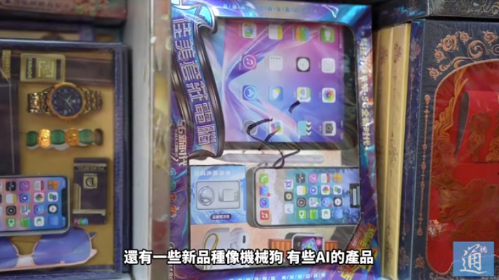 纸扎店俊城行老板杜千送告诉记者,新品如机器狗、AI产品、智能手机、新能源汽车都是近年兴起的祭品,而这些产品一般为年轻人购买居多。