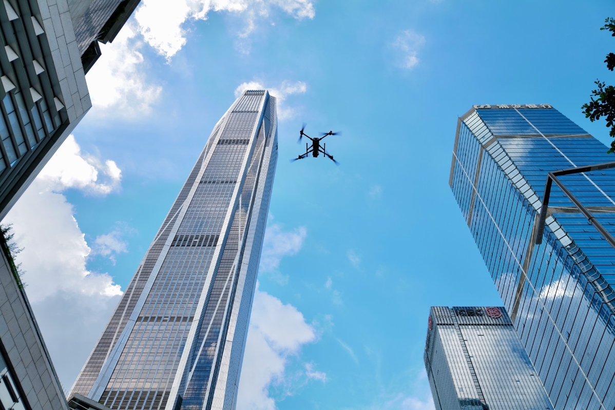 资料图为在深圳平安金融中心的一架无人机。香港中通社图片