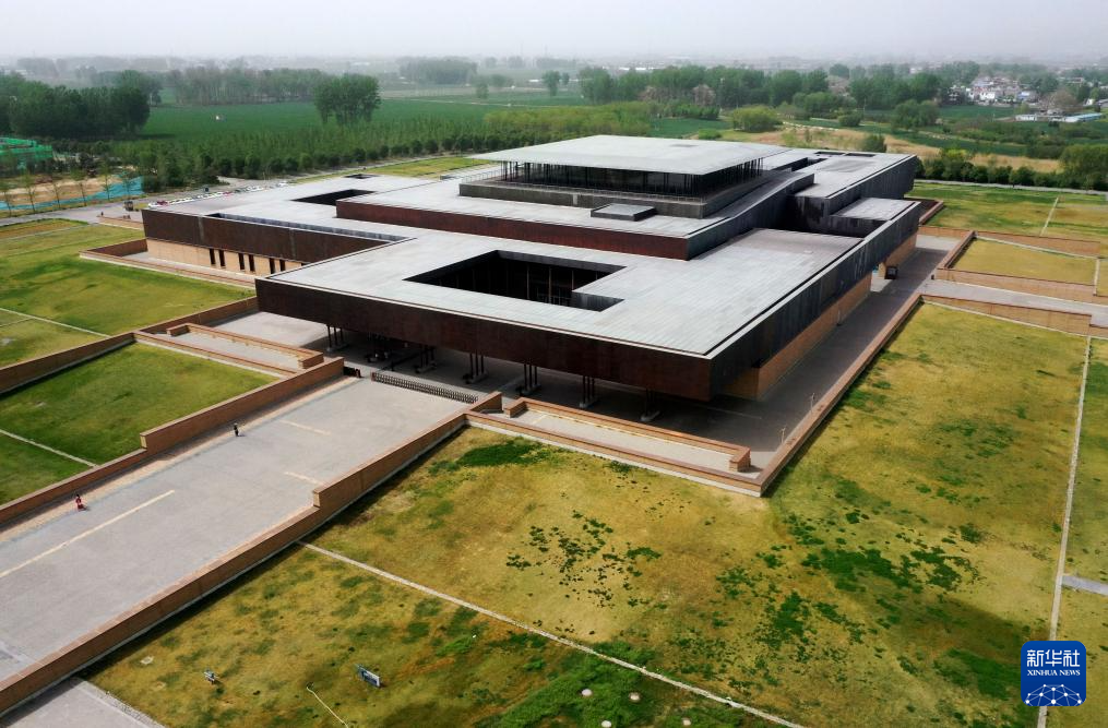 这是2025年4月16日在河南省洛阳市偃师区拍摄的二里头夏都遗址博物馆(无人机照片)。