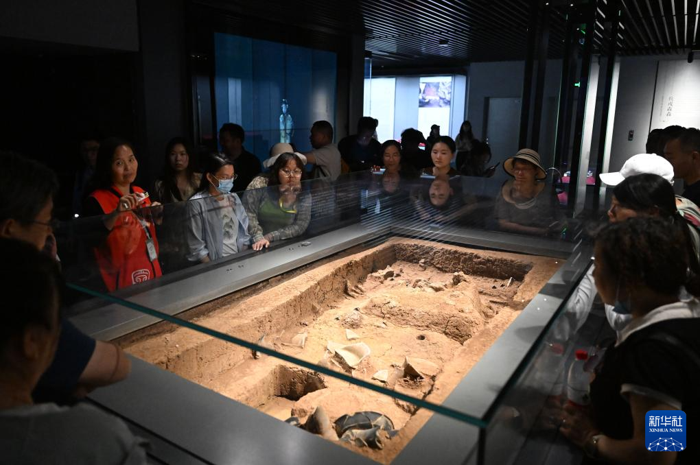 2025年4月16日,游客在位于河南省洛阳市偃师区的二里头夏都遗址博物馆参观。