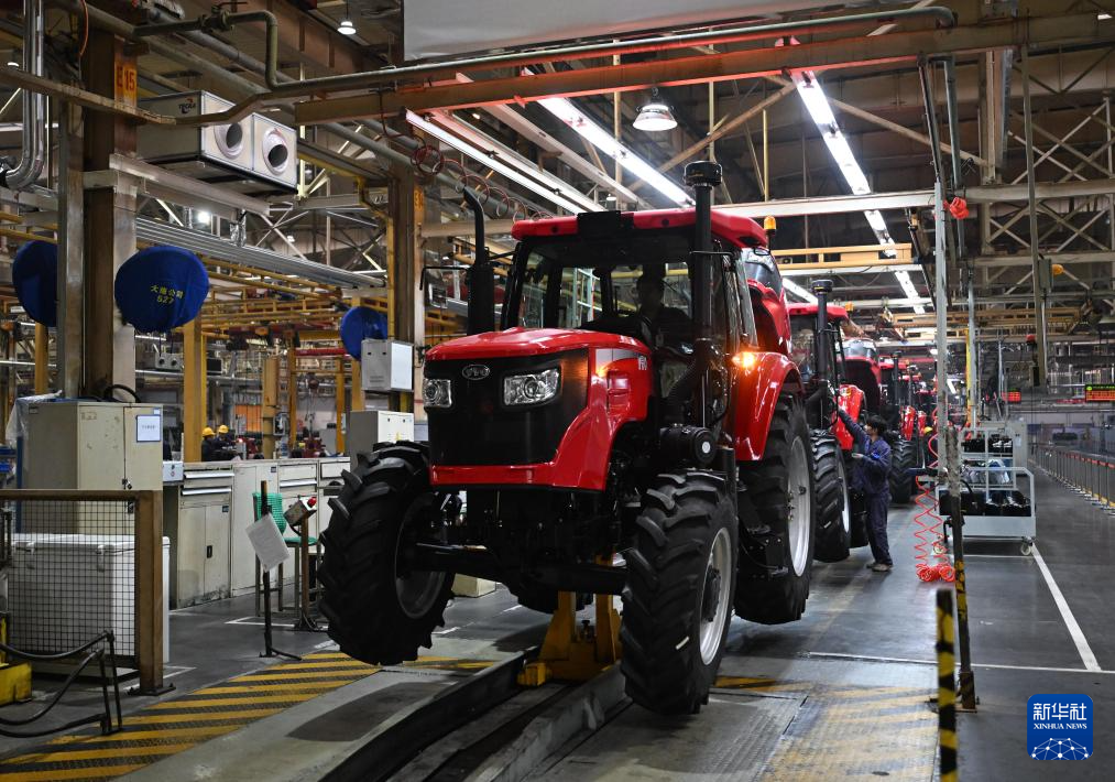 2025年11月4日,工人在位于河南洛阳的国机集团中国一拖大轮拖总装线作业。