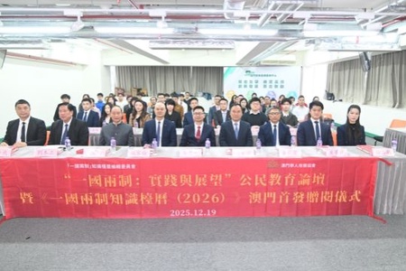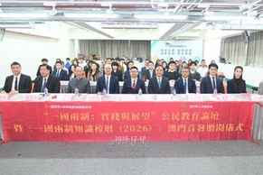 12月19日,“一国两制:实践与展望”公民教育论坛暨2026版“一国两制”知识台历澳门首发赠阅仪式在澳门青年发展服务中心举行。本次活动由澳门...