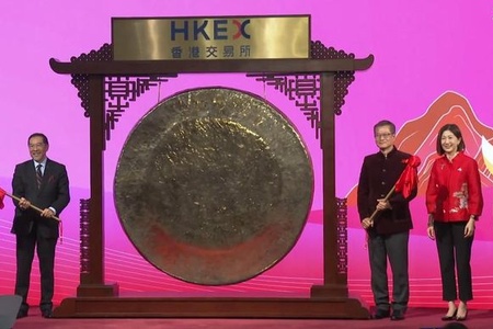 在响亮的锣声中,香港交易所农历马年首个交易日20日拉开帷幕。同日,香港黄金交易所也举办了新春开市仪式。