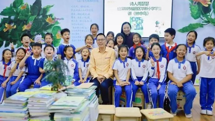 香港新闻社4月25日报道 4月24日下午,在深圳市福田区邓丽云名师工作室的“云水童诗间”诗社里,工作室主持人邓丽云老师带领孩子们正在深情演…
