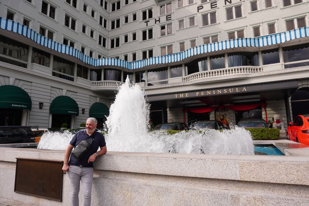 徐英伟表示,有信心全运会期间,本港有足够酒店房间供应。图为一名游客在香港一处酒店前拍照。(香港中通社资料图片)