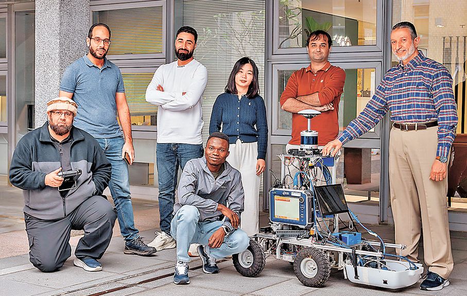 ●Tarek Zayed(右一)领导的团队开发出智慧桥樑检测系统,能够自动检测桥面裂缝,以及识别肉眼无法察觉的潜藏结构问题。