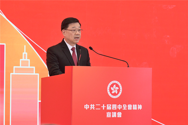 香港新闻社11月25日电 应香港特别行政区政府请求,经中央批准,中央港澳工作办公室、国务院港澳事务办公室邀请中央宣讲团成员,中国科学院院长、党组书记侯建国和中央宣讲团成员,中央财经委员会办公室副主任、中央农村工作领导小组办公室副主任祝卫东来港宣讲中共二十届四中全会精神。特区政府今日上午在政府总部举行宣讲会,向社会各界人士宣讲中共二十届四中全会精神。行政长官李家超致辞时表示,衷心感谢中央对香港的关心和支持,中央宣讲团成员来港宣讲中共二十届四中全会精神,充分体现了中央对香港的高度重视和殷切关怀。