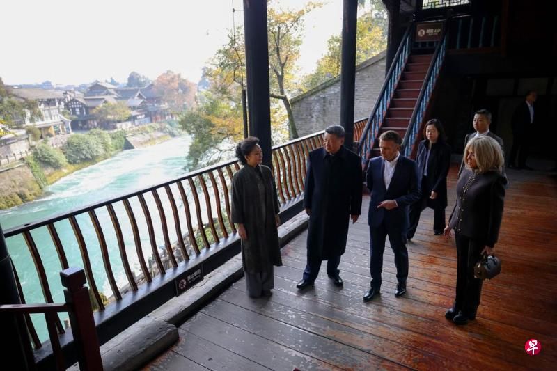 双方一行也在景区喝茶。两国元首夫妇落座怀古亭,临水品茗,纵论天下。习近平夫妇也邀请马克龙夫妇共进午餐,继续深入交流。