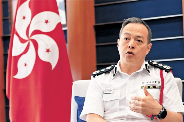 警务处处长周一鸣介绍香港将首次举办国际刑警组织全体大会事宜。(香港文汇报记者万霜灵 摄)