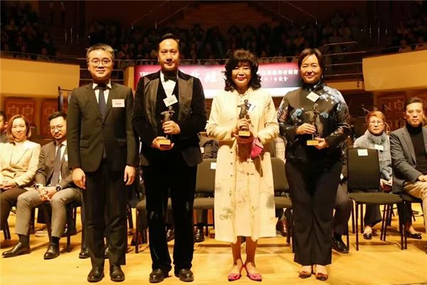 香港青年爱乐乐团创立慈善基金会(慈善机构)创会永远荣誉主席赵曾学韫BBS(右二)、香港青年爱乐乐团慈善基金会主席蔡朝旭(左二),以及全国人大代表、立法会议员、香港广西社团总会会长文颖怡(右一)。