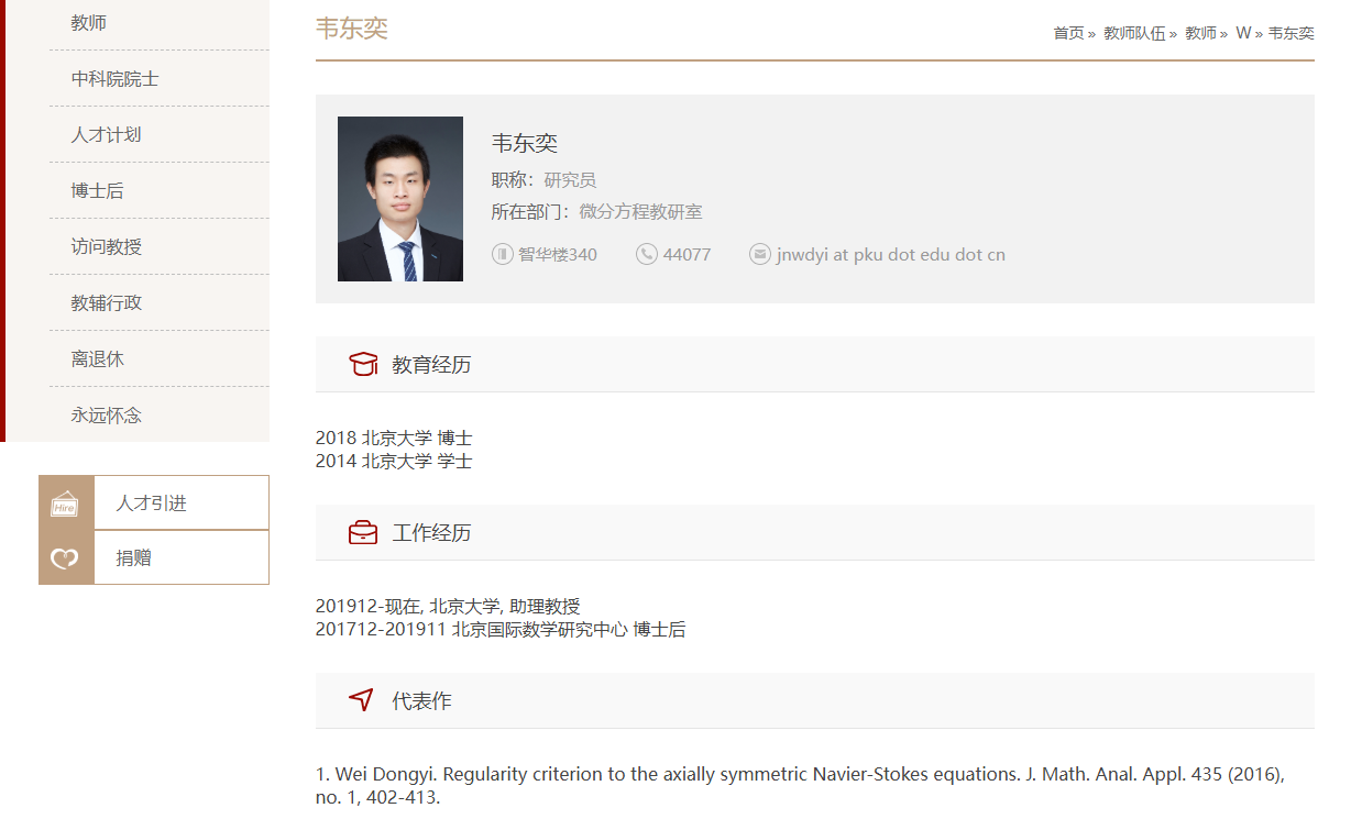 2021年一次接受采访时手拎矿泉水、怀抱馒头意外走红网络,被网友亲切称为“韦神”,但韦东奕始终专注于科研与教学。据北大官网介绍,他自2017年起在北京国际数学研究中心从事博士后研究,长期深耕偏微分方程、几何分析等领域。(完)
