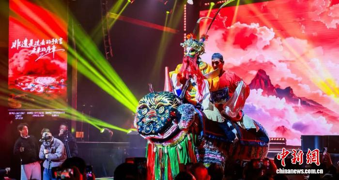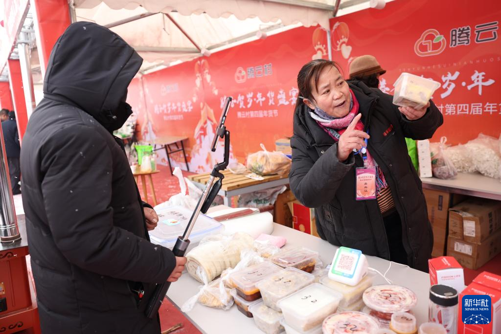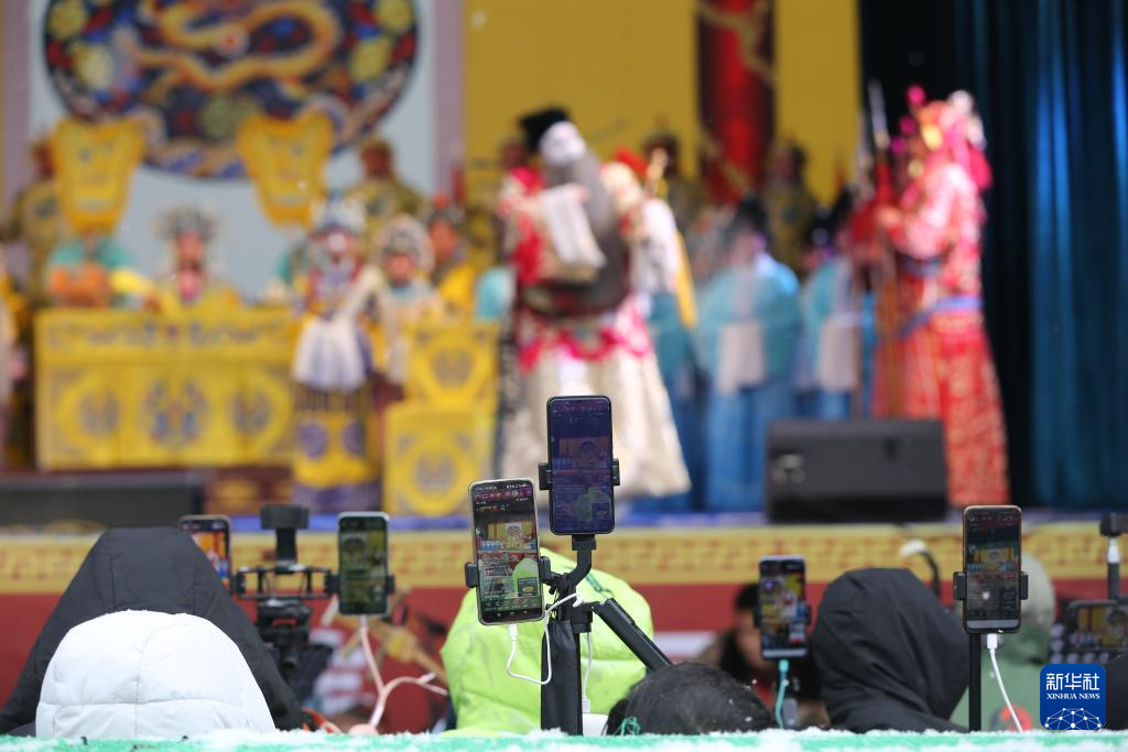 自媒体博主在年货大集上直播秦腔非遗演出(1月19日摄)。