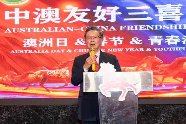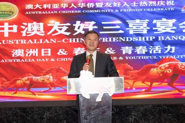中国驻悉尼总领事王愚在致辞中表示,澳洲日与中国春节同庆,充分体现了澳大利亚社会的包容、多元与和谐氛围。他高度肯定澳大利亚华人团体协会和澳中青年企业家联合会长期以来在促进中澳民间友好、推动青年交流与经贸合作方面所作出的积极贡献。王愚指出,当前中澳关系正处在改善发展的重要阶段,希望广大华侨华人继续发挥桥梁纽带作用,在经贸合作、文化交流、青年往来等领域持续贡献力量,为增进两国人民相互理解与友谊注入更多正能量,并向全体来宾致以新春祝福。