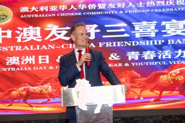 新南威尔士州公平交易和建筑影子部长蒂姆·詹姆斯在致辞中高度评价华人社区对新州社会与经济发展的重要贡献。他表示,华侨华人不仅是澳大利亚多元文化的重要组成部分,也是推动澳中友好与经贸合作的重要力量。青年交流对两国未来关系具有深远意义,期待看到更多澳中青年在创新、创业与文化领域加强合作,为澳中友好关系注入新的活力。