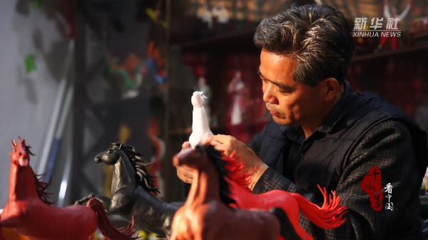 新春将至,在山东省临沂市沂南县红石寨非物质文化遗产博物馆,面塑艺人左安胜正全神贯注地捏制一匹匹色彩明艳、神采飞扬的骏马。