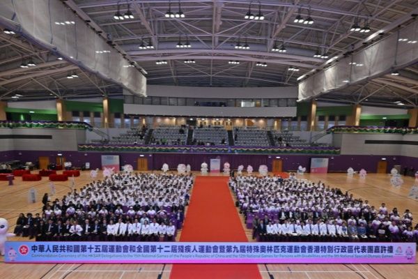 香港新闻社2月13日报道 特区政府12日于马鞍山体育馆举行嘉许礼,表扬香港代表团在第十五届全国运动会(全运会)及全国第十二届残疾人运动会暨第九届特殊奥林匹克运动会(残特奥会)的卓越表现。