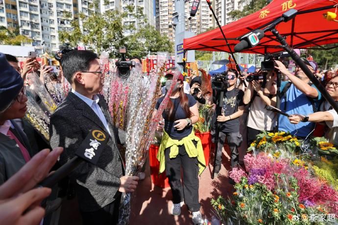 李家超称,16日下午到访位于观塘游乐场的年宵市场,喜见现场人头涌涌,非常热闹,更有食环署吉祥物清洁龙阿德“打卡点”,可谓别开生面。他在多个湿货摊档购买了新年花卉,包括银柳、五代同堂和兰花,支持本地经济。