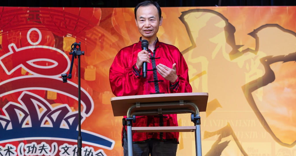 Hurstville议员王斌在致辞中以“以文会友,以武止戈”为题分享了自己对中华武术精神的理解。他表示,“武”字拆开即“止戈”,武术的真正意义在于创造和平。他还讲述了自己守护社区李小龙铜像的故事,并引用李小龙“Be like water”的哲学,指出包容与灵活正是多元社会最重要的力量。