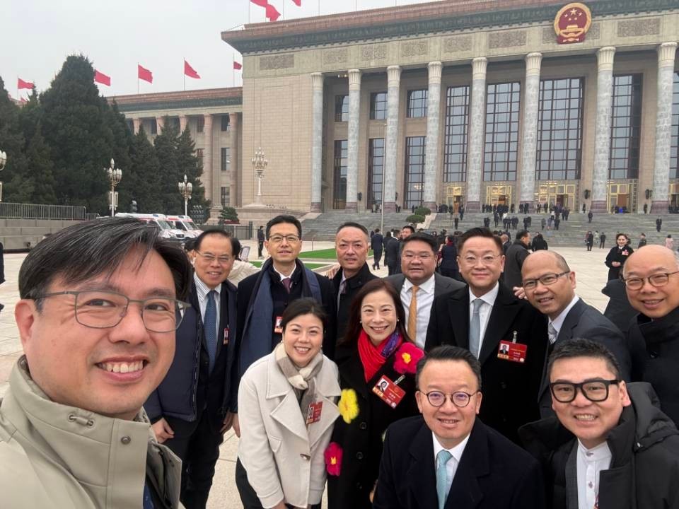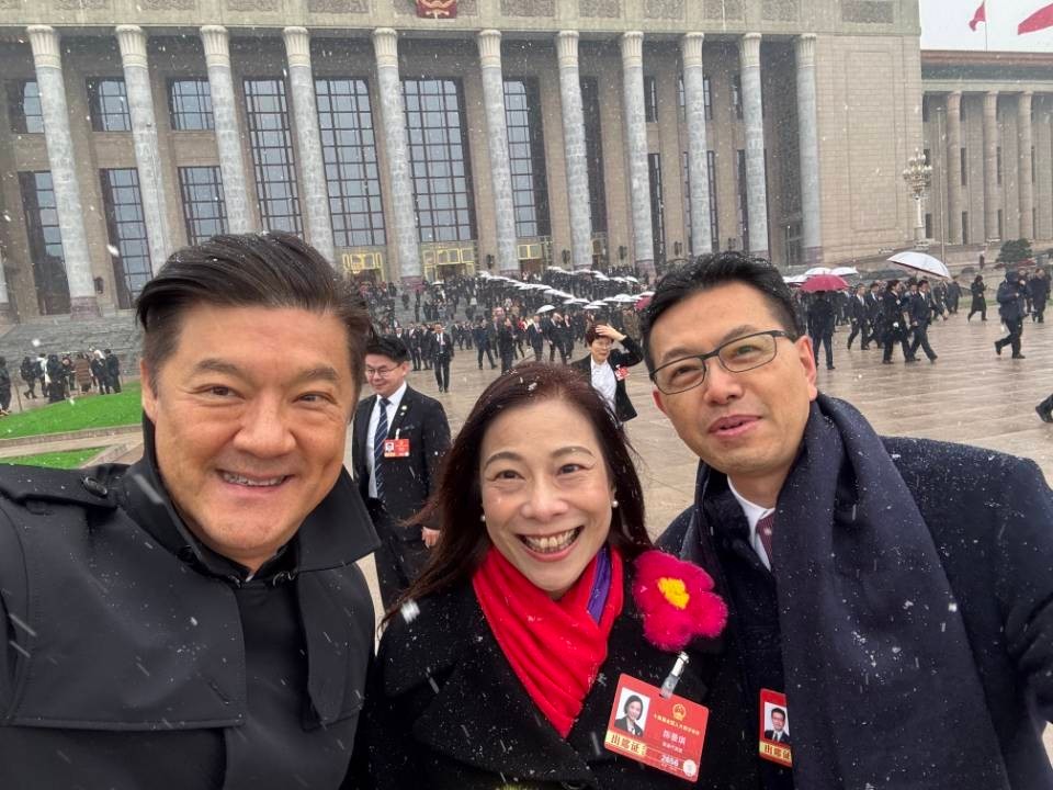 3月4日,全国人民代表大会预备会在北京举行,遇上大雪纷飞,象征祥瑞同希望。港区人大代表兴奋在雪中合影,精神奕奕。(完)