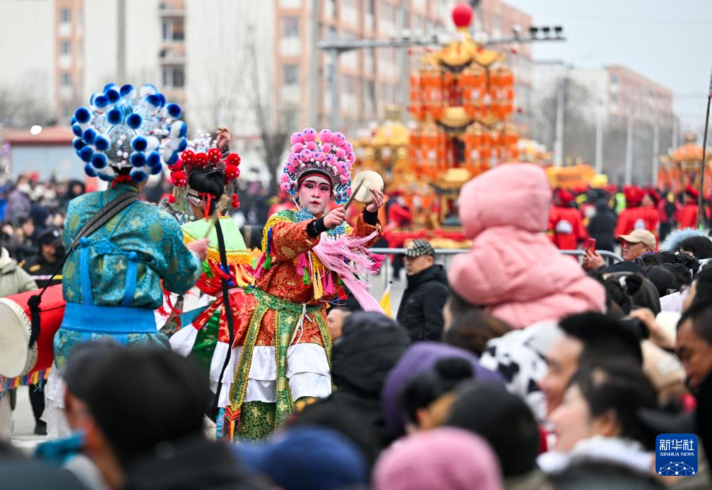 3月4日,演职人员在妈祖祭典(葛沽宝辇会)上表演。