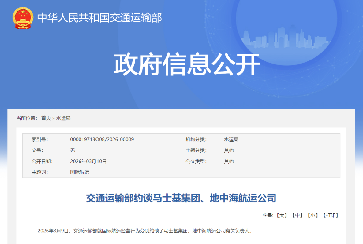 据交通运输部10日官网通报,此次约谈旨在督促企业依法依规开展国际航运业务,维护公平、透明、稳定的全球物流供应链。公告未披露具体约谈内容。