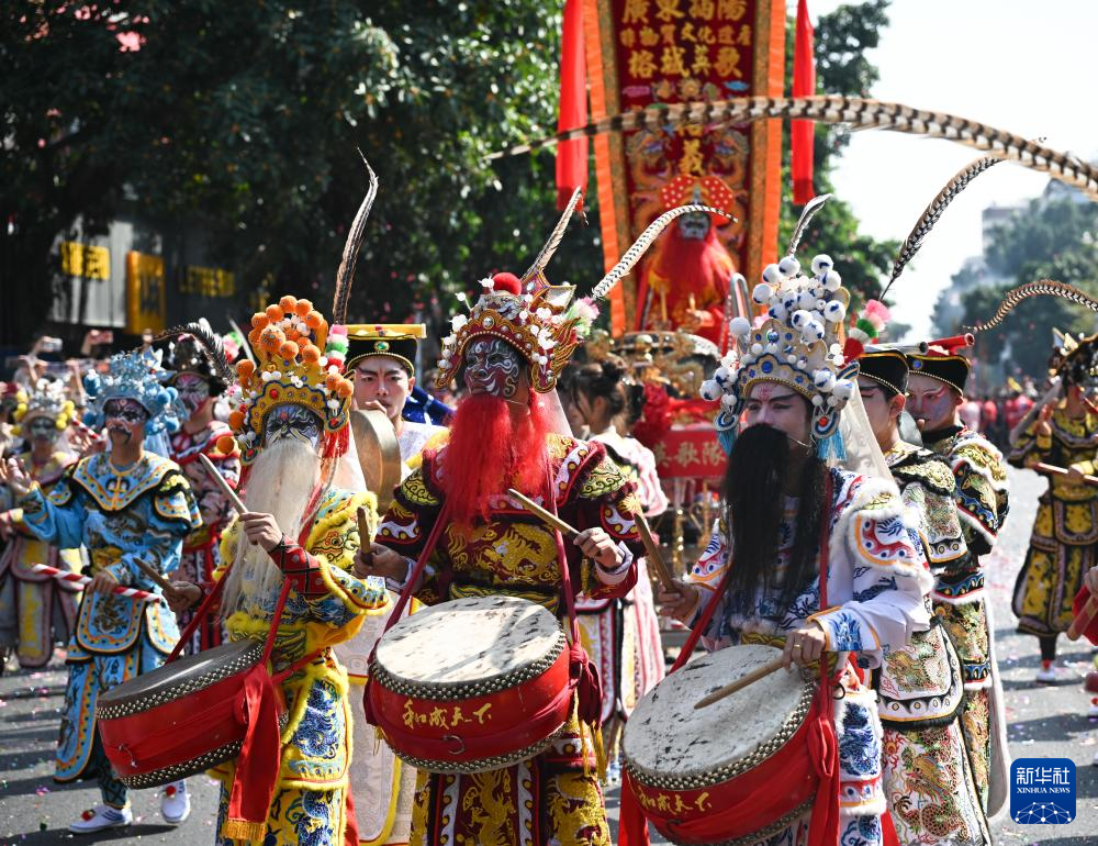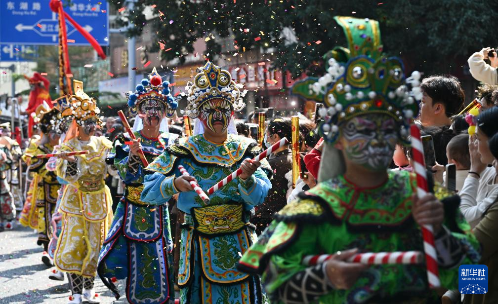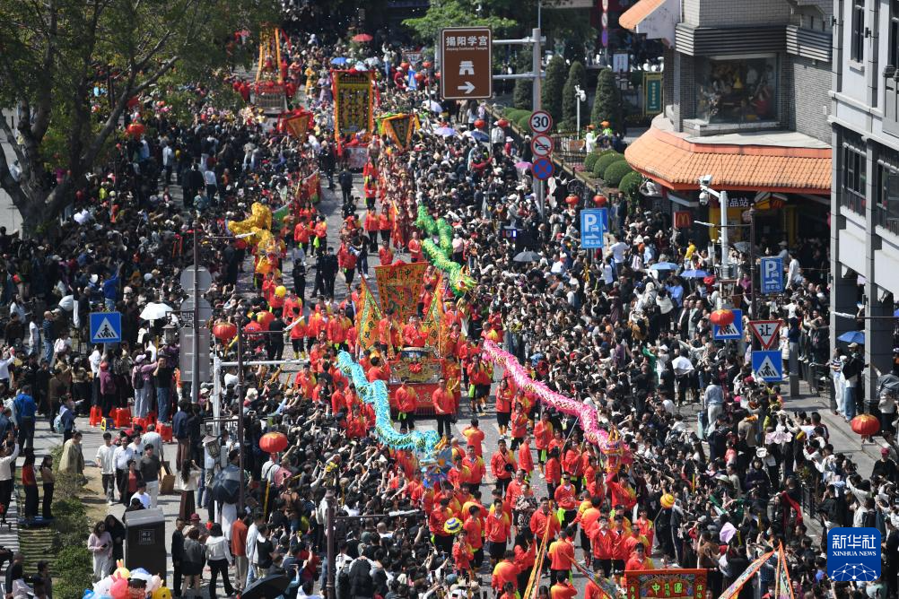 3月11日,在广东揭阳城隍庙会上,青狮、舞龙、英歌舞等非遗表演精彩上演,吸引众多市民游客观看。农历正月二十三举行的揭阳城隍庙会是当地盛大的传统民俗文化活动之一。