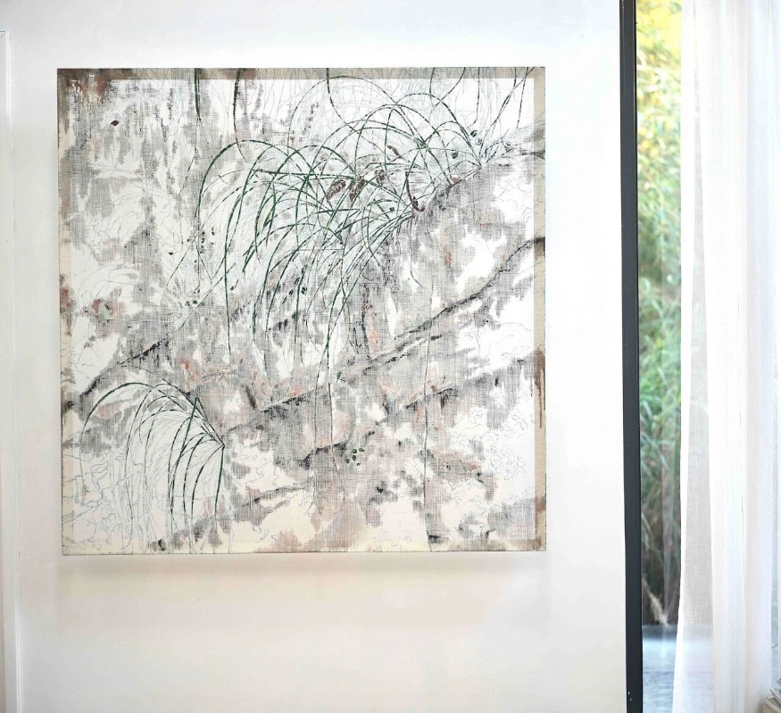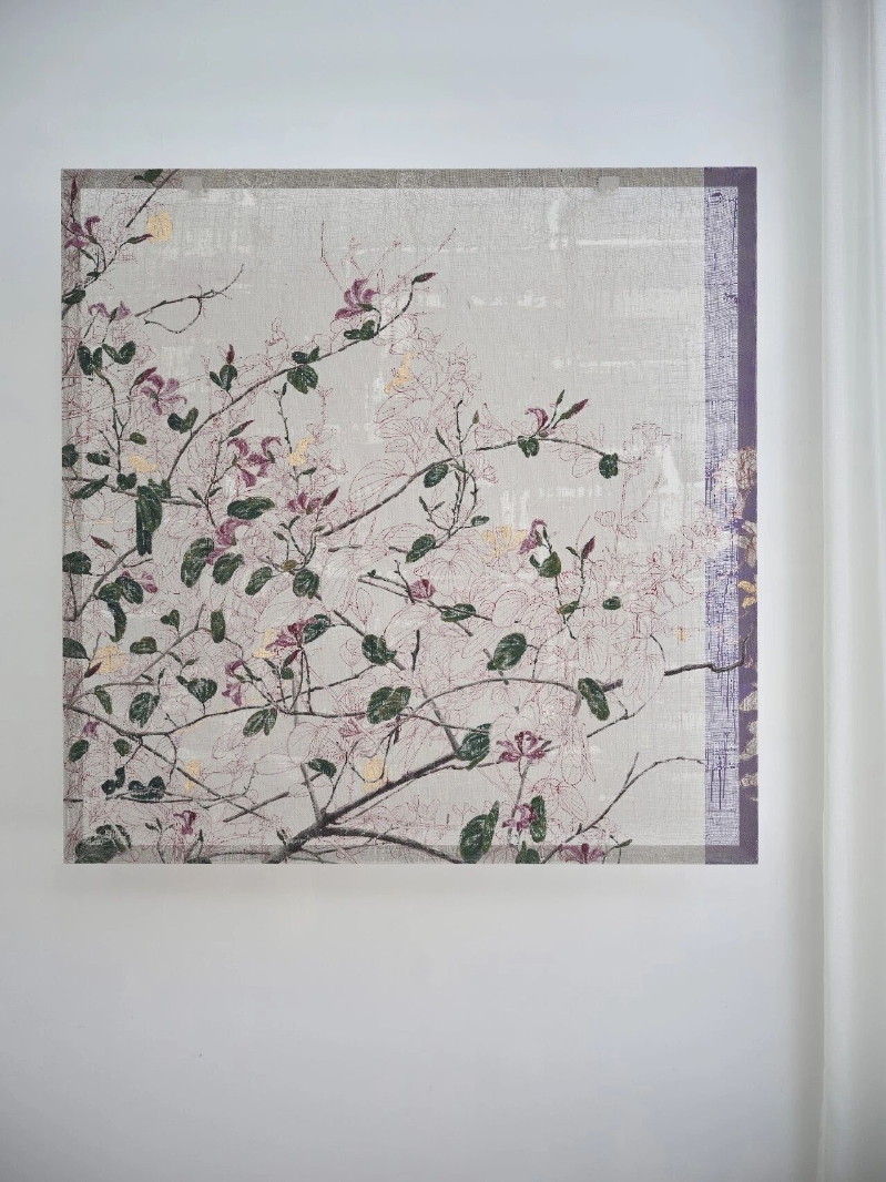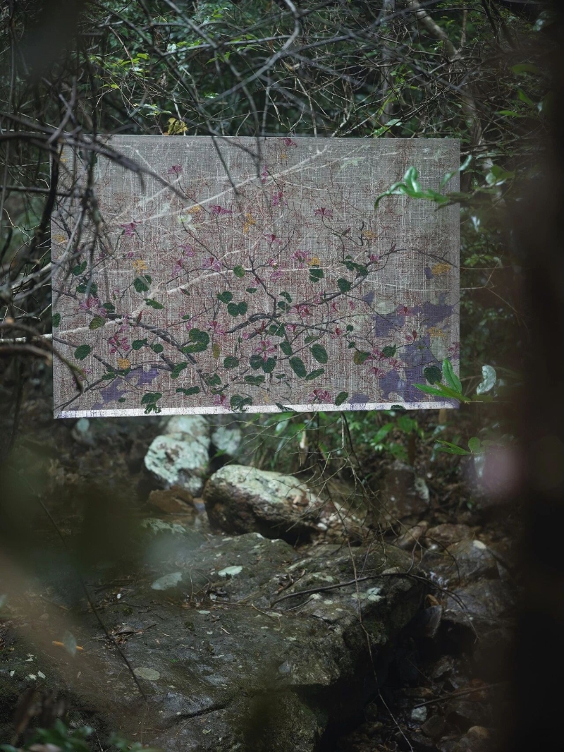 这些特殊的材料拥有介于“有与无之间”的物性,恰好能承载他痴迷的“生长感”与“时间性”。他的画不是一幅静态的风景,而是风景中的植物在光线移动下缓慢生长的姿态和过程。现在吴观真画面上的留白日益增多,他知道不必填满画布。自然没有宣言,只有默默生长。春天就是它的宣言。