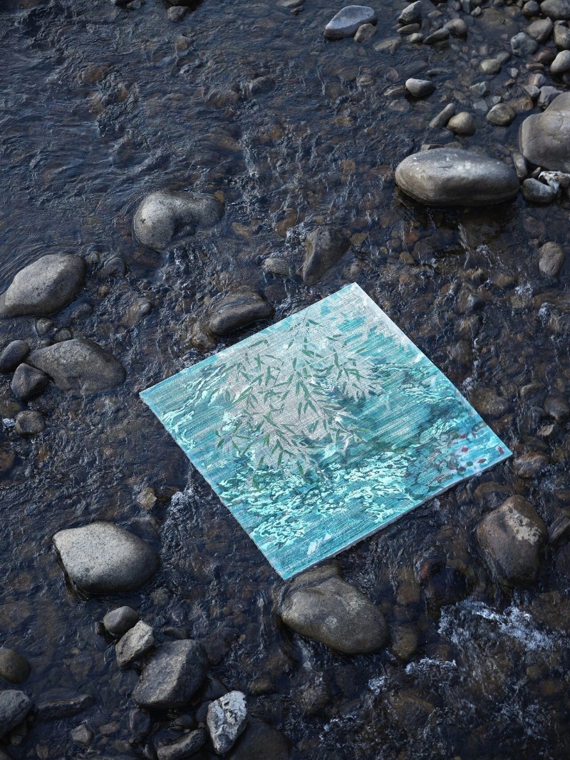 吴观真《那水-26.01.02》,2026,大漆、苎麻、银箔,140x140cm。