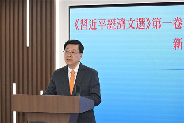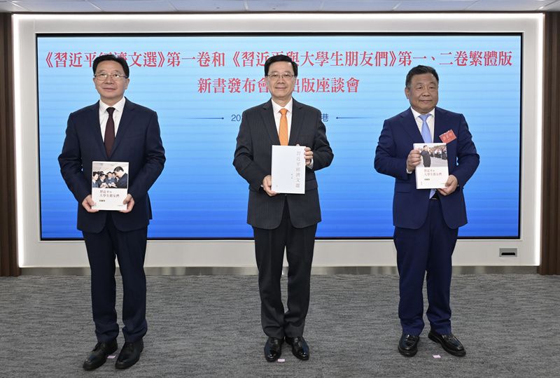 李家超致辞时表示,很高兴和大家一起见证《习近平经济文选》第一卷和《习近平与大学生朋友们》第一、二卷在香港推出繁体版新书,相信这些作品将带领大家更全面理解国家发展大局,激发市民积极投身国家建设的热情和使命感,一同为中华民族伟大复兴贡献香港力量。