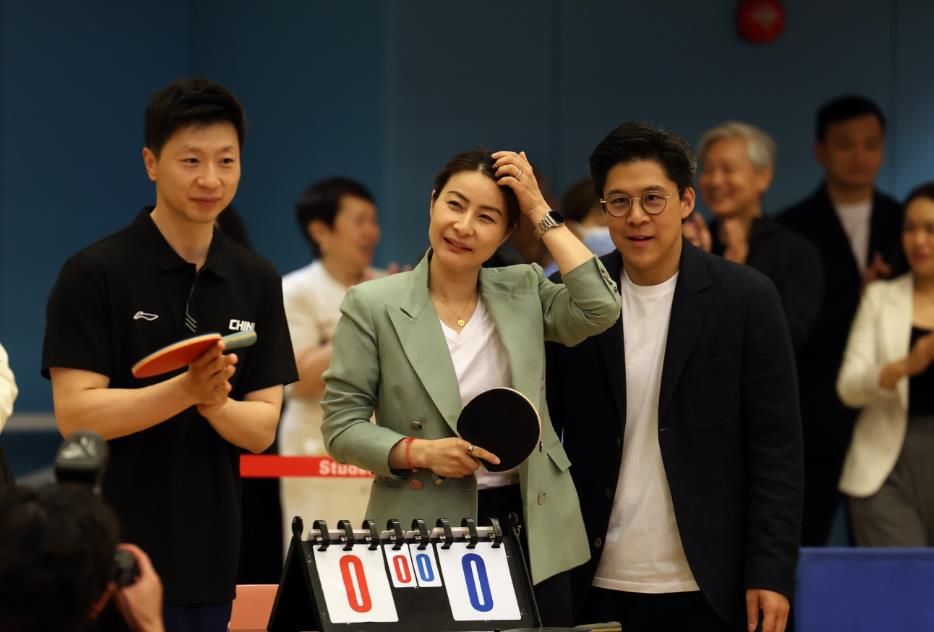 分享会结束后,马龙与霍启刚、以及理工大学乒乓校队在体育馆进行对打交流,郭晶晶也难得落场参与。近百名学生在场馆观战,一睹奥运金牌英姿,气氛炽热。