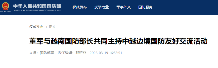 据中国国防部19日消息,董军说,中越“3+3”战略对话机制首次部长级会议后,接续举行边境国防友好交流活动,是落实两党两国最高领导人重要共识的具体举措,体现了两军交往的高水平、独特性。两军要传承“同志加兄弟”深厚友谊,保持密切战略沟通,发挥边境活动品牌效应,深入推进海上安全、人员交流等领域务实合作,为构建具有战略意义的中越命运共同体贡献力量。