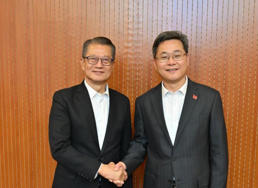 陈茂波22日下午拜会了财政部部长蓝佛安,双方就“十五五”规划、国家和环球经济形势和财政政策,以及加强内地与香港的合作等议题深入交流。财经事务及库务局局长许正宇和证券及期货监察事务委员会主席黄天祐博士参与会面。