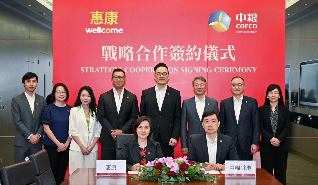 惠康与中粮集团(香港)有限公司举行战略合作协议签约仪式。双方宣布正式建立长期合作关系,将加强在优质食品供应、品牌推广、供应链运作与消费升级等多个范畴的合作。