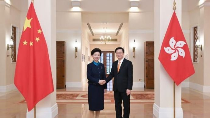 香港新闻社4月1日报道 行政长官李家超3月31日在礼宾府欢迎国务委员、国务院妇女儿童工作委员会主任、全国妇联主席谌贻琴率团来港,出席香港家庭暨妇女发展高峰会并给予指导,体现国家对香港特区妇女事业和家庭建设工作的重视。