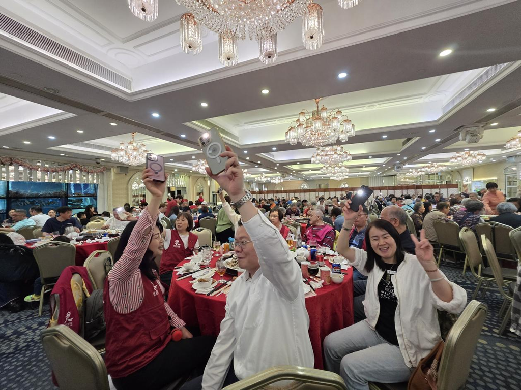 香港新闻社4月6日报道 东区乐康关爱队3月25日在富临皇宫举办「金马献瑞 新春敬老春茗」联欢晚会,邀请区内长者、义工及各界嘉宾共300人齐聚一堂,共迎新春,现场氛围温馨热烈。