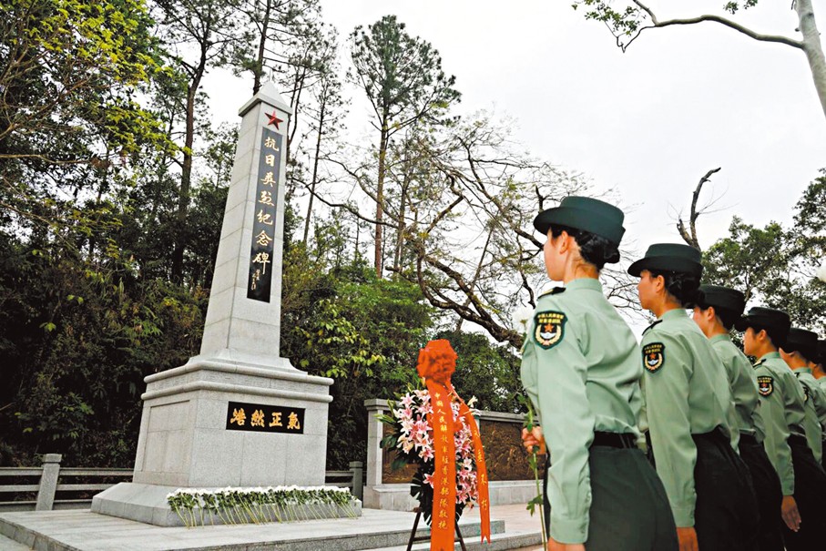 香港新闻社4月7日报道 据解放军驻香港部队官方消息,清明节来临之际,驻香港部队官兵代表赴香港新界乌蛟腾抗日英烈纪念碑、斩竹湾抗日英烈纪念碑和刘春祥抗日英雄群体纪念碑开展瞻仰祭扫活动,深切缅怀在抗日战争时期英勇牺牲的革命先烈。