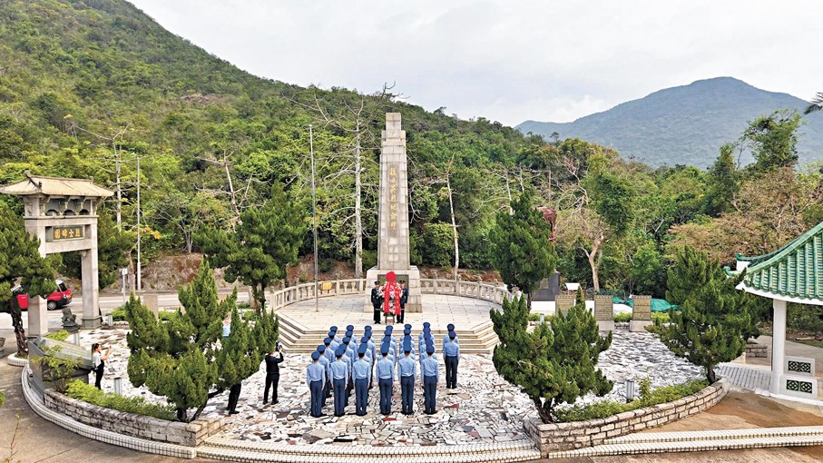 驻香港部队官兵代表赴香港抗日英烈纪念碑开展瞻仰祭扫活动。