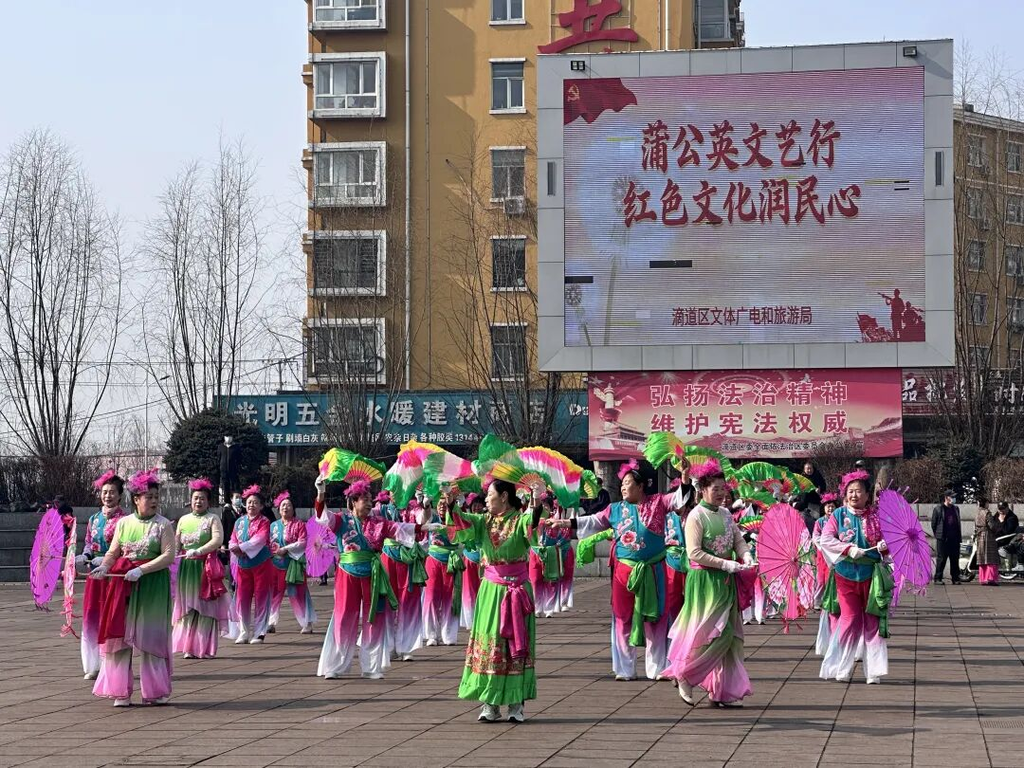 香港新闻社4月9日报道 为传承红色基因,丰富社区文化生活,让红色文化扎根基层、深入人心,近日,滴道区文体广电和旅游局在滴道区人民广场举办以“蒲公英文艺行 红色文化润民心”为主题的送红色文化进社区活动,以群众喜闻乐见的文艺形式传递红色力量,营造浓厚的红色文化氛围。