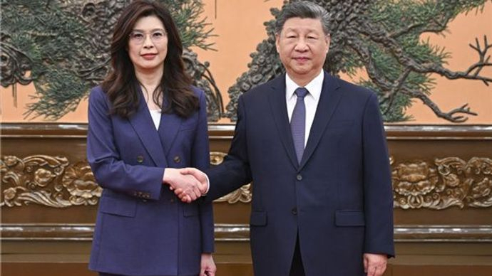 中共中央总书记习近平4月10日上午在北京会见中国国民党主席郑丽文。(新华社)