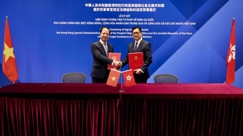香港新闻社4月14日电 保安局局长邓炳强与越南社会主义共和国(越南)最高人民检察院副检察长陈海军,今日(14日)分别代表香港特别行政区(香港特区)及越南,签署关于刑事事宜相互法律协助的双边协定。邓炳强在签署仪式上表示,国际间在司法协助上的合作,对于各个司法管辖区合力将匪徒绳之于法有十分重要的作用。
